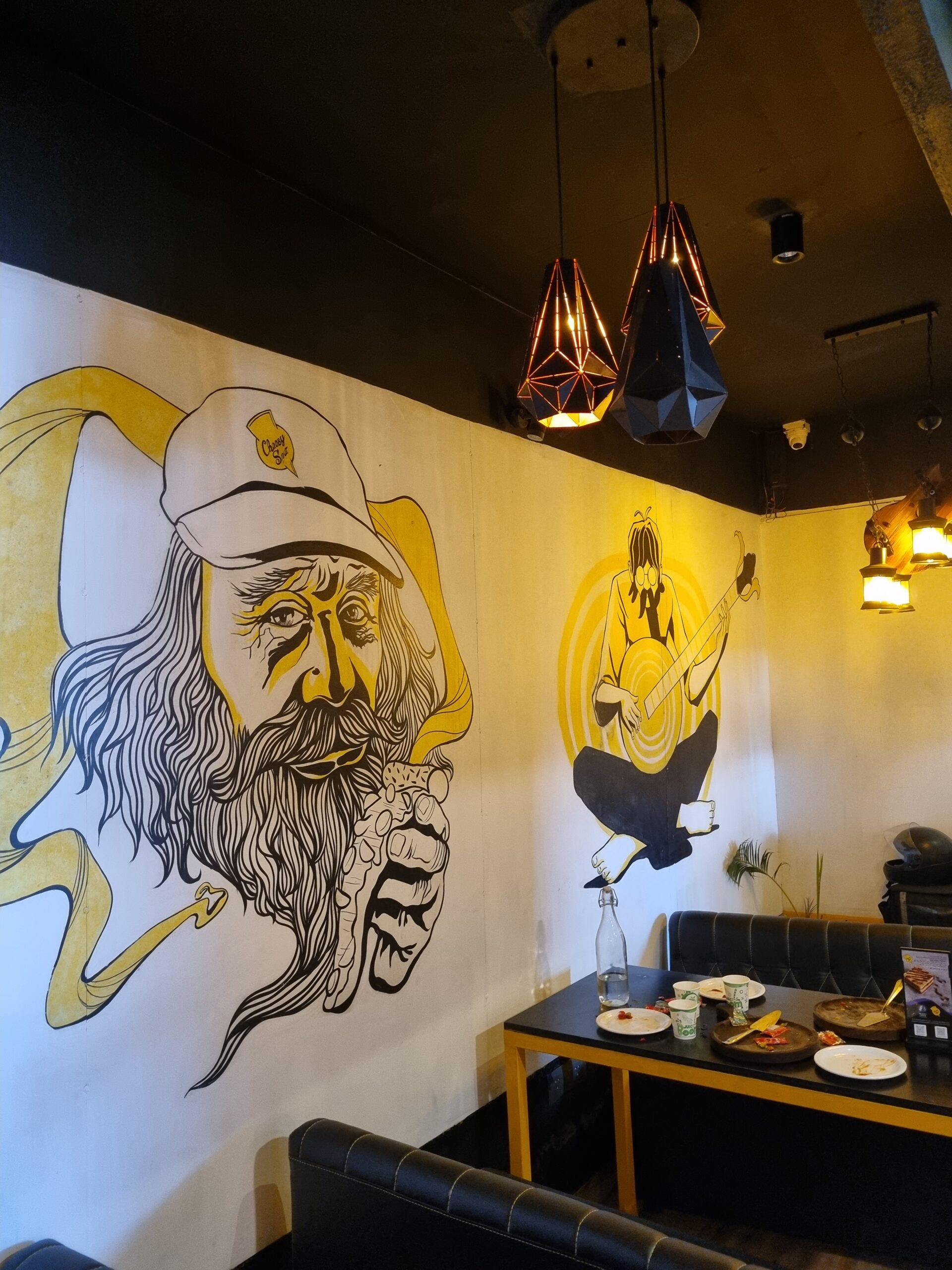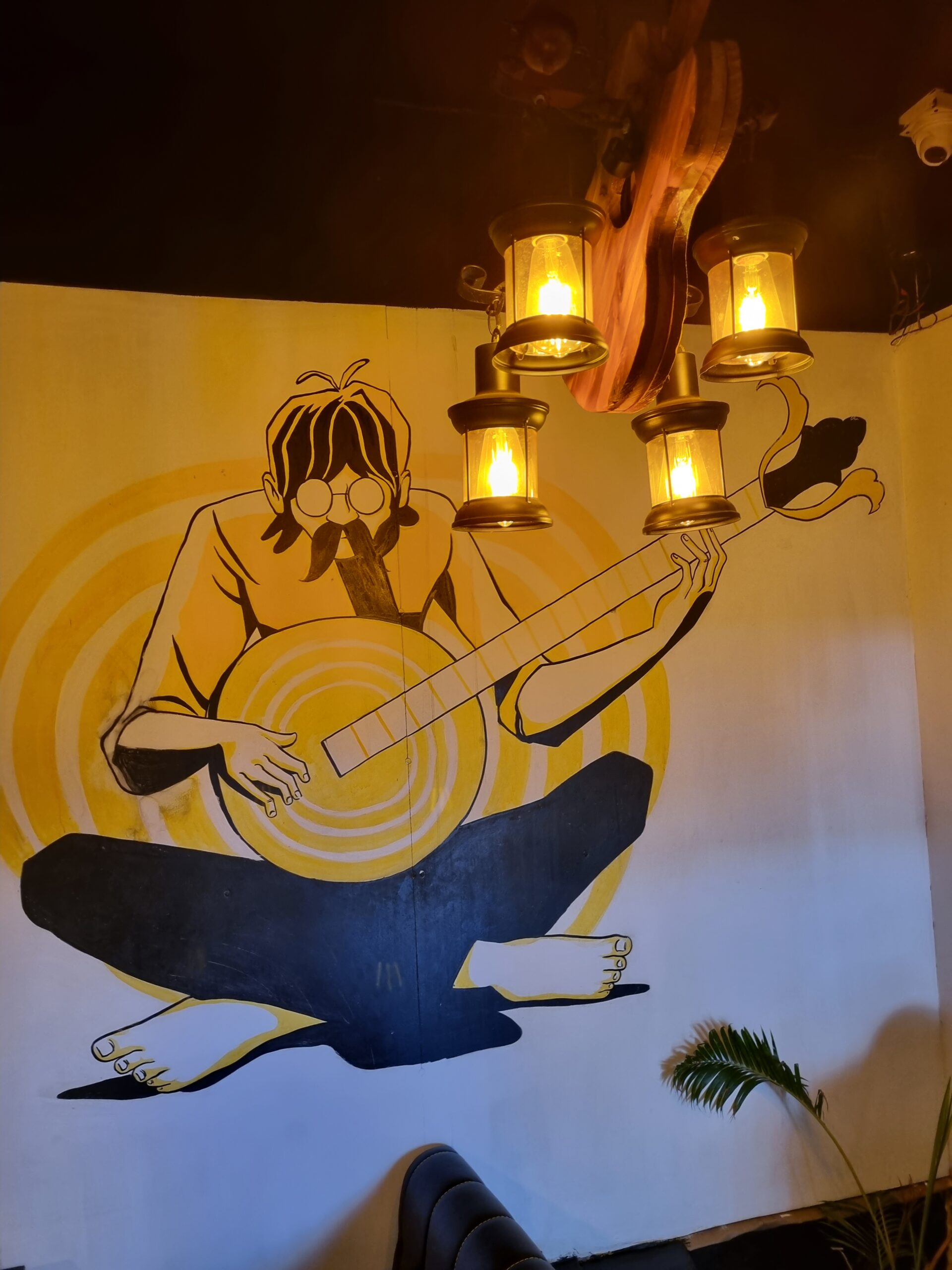 Even before the items on the menu catch your attention, the ambience and the interior design of the place is sure to surprise you. So much care and attention have been given to present the guests with a great time that we saw people from all age groups hanging around. Some of them were lounging there for quite some time, it seemed. The wall art, decorations, book stands, lamps, a motorcycle up on the wall and graffiti of various shapes, colours and sizes are sure to give you a feeling of walking into a hip and happening place. Though the place is usually frequented by youngsters for hanging out, we could see many families (just like us), who had come to enjoy a good meal. The lounge music they played while we were there was soothing and it complimented the cool temperature inside the building quite well.