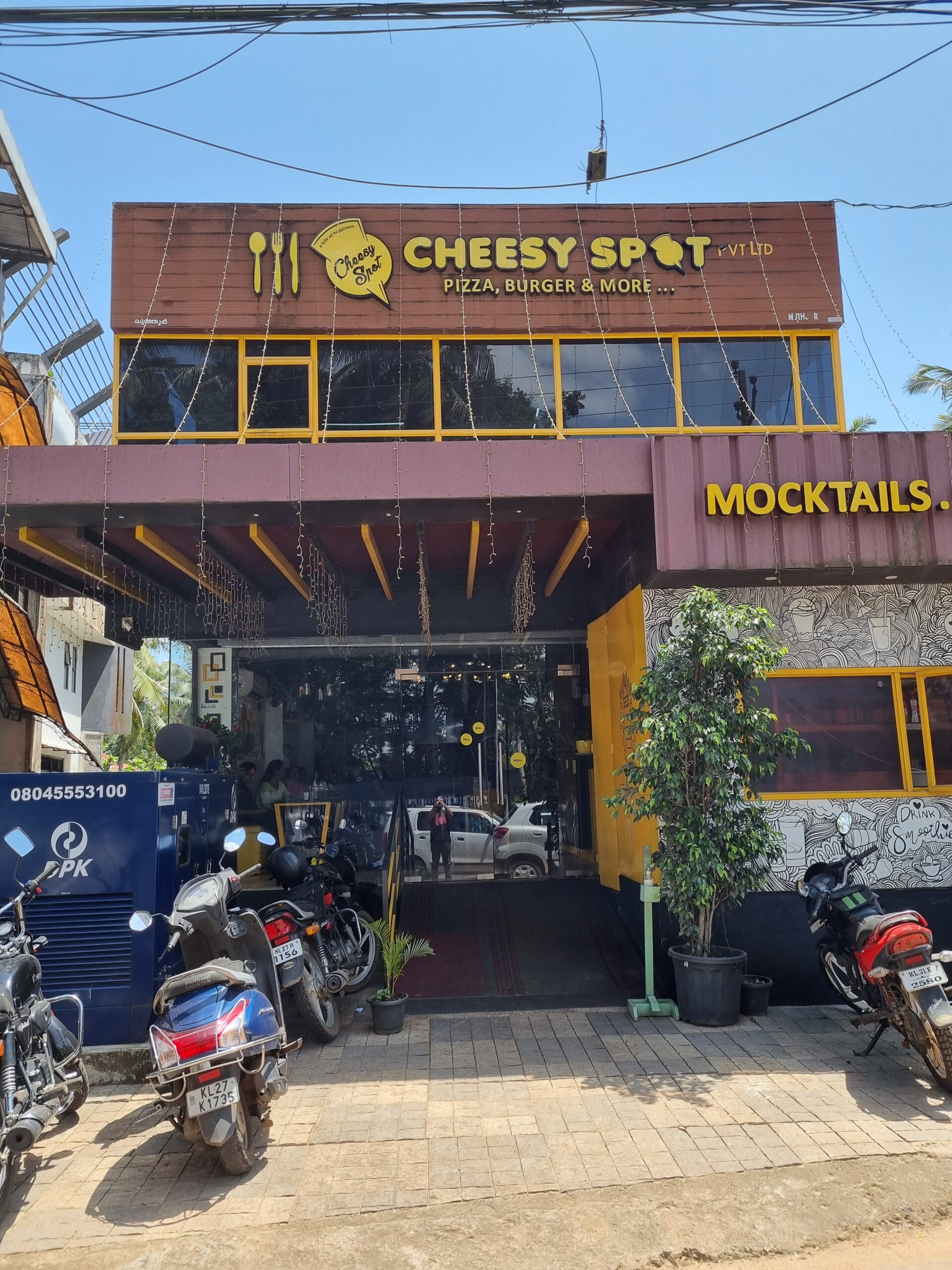 Cheesy Spot is located on the Main Central Road (MC Road) between Thiruvalla and Changanassery. The eatery is located right opposite Elan Designer Studio and about 100 metres away from Mahalekshmi Silks (The Classics) in Muthoor, Thiruvalla.